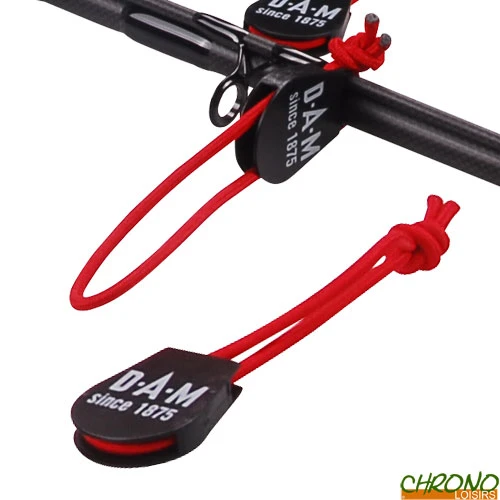 Sangles pratiques avec logo Dam Ă©lĂ©gant pour une fixation rapide et sĂ»re des Ă©lĂ©ments de cannes pendant le transport ou le stockage.Â