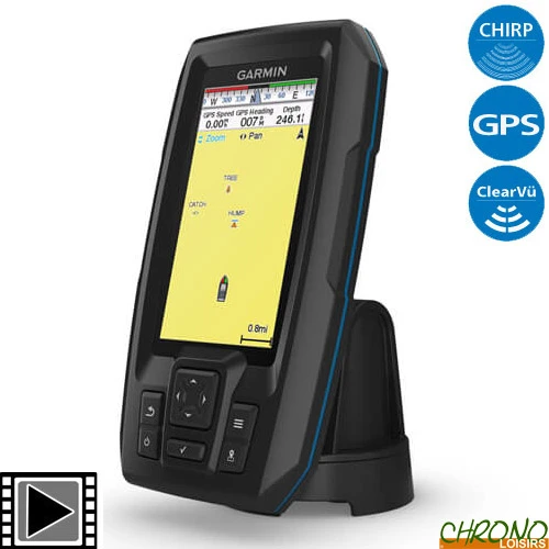La boîte comprend une sonde qui comprend le meilleur CHIRP traditionnel Garmin, un sondeur à balayage CHIRP ClearVü et un étrier inclinable/pivotant. Le GPS intégré haute sensibilité vous permet de marquer les waypoints, de créer des cartes avec des contours de 30 cm et de visualiser la vitesse de votre bateau.