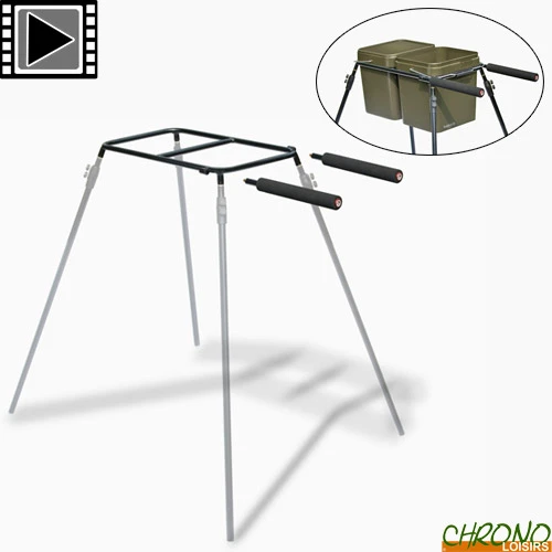 La station peut contenir deux seaux carrés de 17L (non fournis) réglés à la hauteur idéale pour vous permettre d’accéder aisément à vos spod-mixes sans avoir à vous baisser. De plus, le support à cannes rembourré vous permettra de garder vos mains libres pour charger votre spod ou spomb grâce au système à écoulement gravitaire.